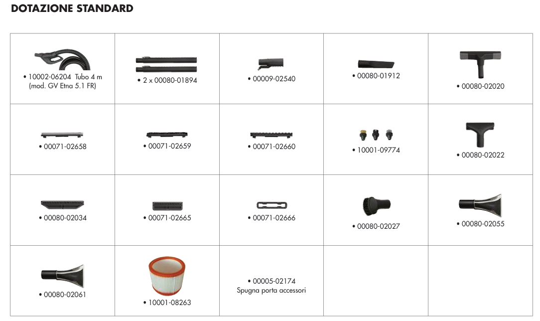 DATI TECNICI pressione/temperatura max/vapore prodotto potenza assorbita (caldaia) potenza assorbita (motore aspirazione) depressione colonna/aria aspirata capacità serb. acqua/detergente dimensioni (cm)/peso GV Etna-R 5.1 FR 45004-00037 7 bar/165° C/3,25 kg/h 3000 W/220-240V ~ 50/60Hz (Ph 1) 1100 W 22 kPa/220 m³/h 5 l/5 l 220 75x60x103/35 k